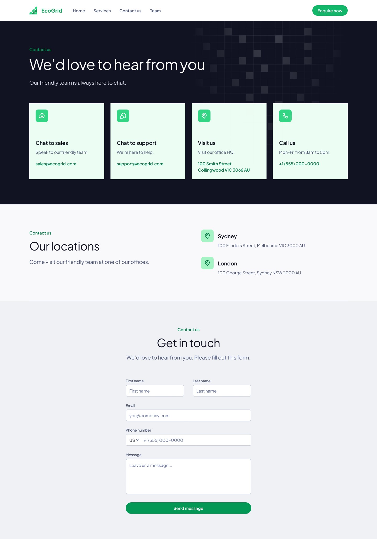 A contact us page provides visitors with methods to communicate with an organization. It typically includes a contact form, business address, phone numbers, email addresses, and sometimes a location.