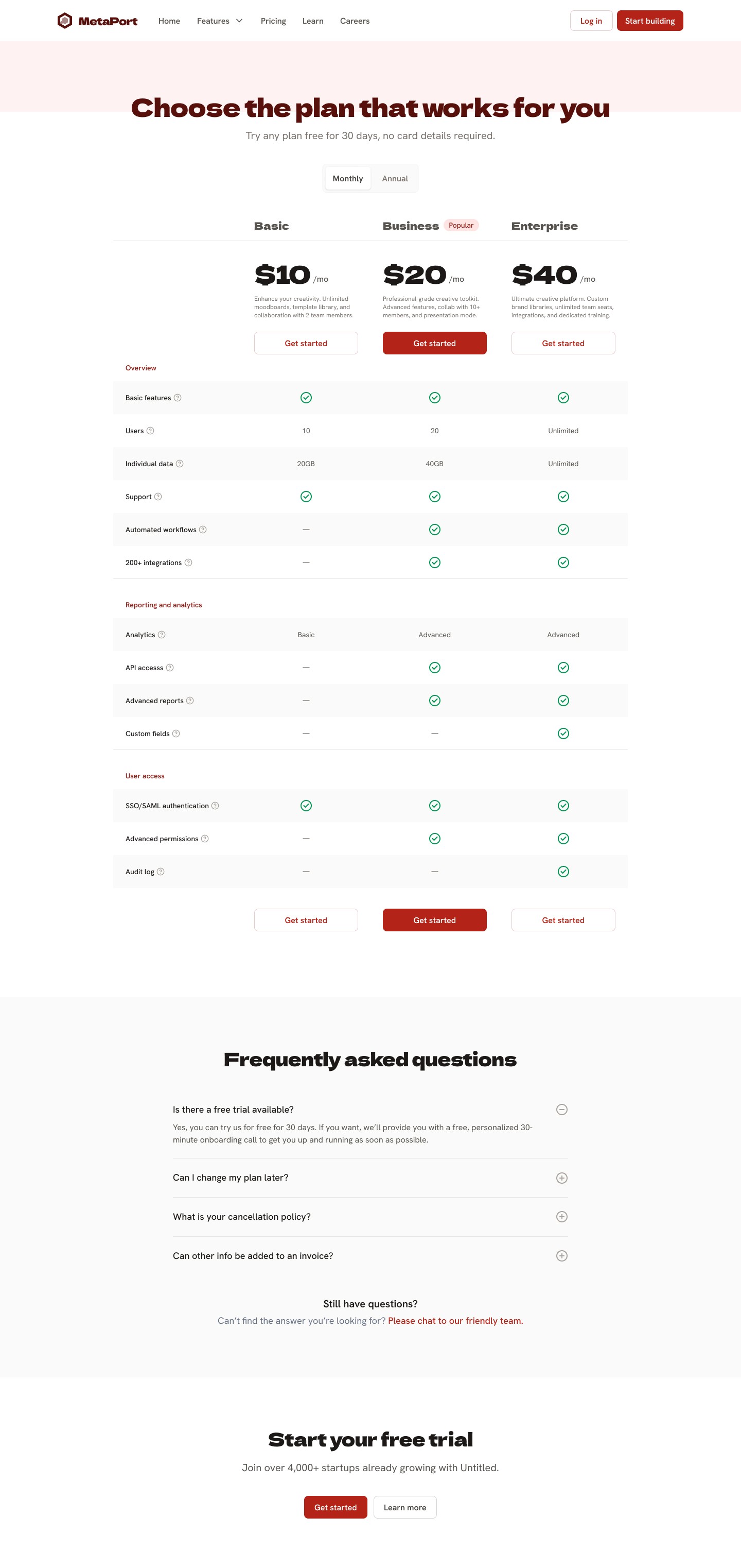 A pricing page presents product or service costs, features, and plan comparisons in a clear, organized format. It helps users understand different pricing tiers, included features, and subscription options, enabling them to make informed purchasing decisions.